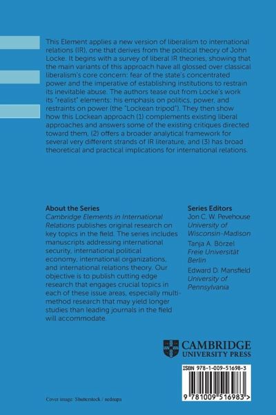 This Element applies a new version of liberalism to international relations (IR), one that derives from the political theory of John Locke. The authors tease out the â realistâ elements from his political writings: his emphasis on politics, power, and restraints on power.