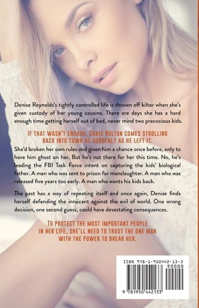 Denise Reynolds's tightly controlled life is thrown off kilter when she's given custody of her young cousins. There are days she has a hard enough time getting herself out of bed, never mind two precocious kids. If that wasn't enough, Chris Nolton comes strolling back into town as suddenly as he left it. She'd broken her own rules and given him a chance once before, only to have him ghost on her. But he's not there for her this time. No, he's leading the FBI Task Force intent on capturing the kids' biological father. A man who was sent to prison for manslaughter. A man who was released five years too early. A man who wants his kids back. The past has a way of repeating itself and once again, Denise finds herself defending the innocent against the evil of world. One wrong decision, one second guess, could have devastating consequences. To protect the most important people in her life, she'll need to trust the one man with the power to break her.