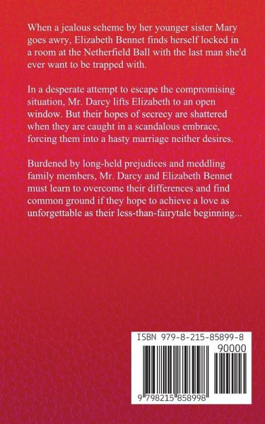 When a jealous scheme by her younger sister Mary goes awry, Elizabeth Bennet finds herself locked in a room at the Netherfield Ball with the last man she'd ever want to be trapped with. In a desperate attempt to escape the compromising situation, Mr. Darcy lifts Elizabeth to an open window. But their hopes of secrecy are shattered when they are caught in a scandalous embrace, forcing them into a hasty marriage neither desires. Burdened by long-held prejudices and meddling family members, Mr. Darcy and Elizabeth Bennet must learn to overcome their differences and find common ground if they hope to achieve a love as unforgettable as their less-than-fairytale beginning...