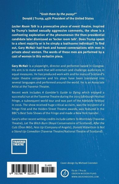 Locker Room Talk is a provocative piece of event theatre. Inspired by Donald Trump's leaked sexually aggressive comments, the show is a confronting exploration of the phenomenon the then presidential candidate later dismissed as 'locker room banter'. But can this be true? Is this simply a loathsome individual or one who speaks to a silent majority? Gary McNair wants to think we are better than this, and is having honest conversations with men about women to see if he is right or wrong. The words of these men are performed by a cast of women in this verbatim piece.