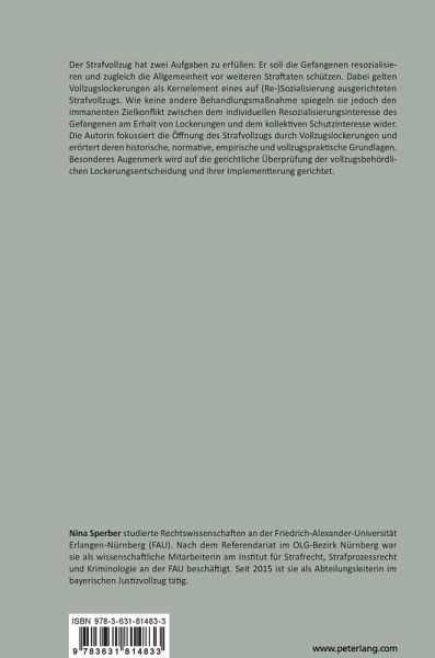 Der Strafvollzug hat zwei Aufgaben zu erfüllen: Er soll die Gefangenen resozialisieren und zugleich die Allgemeinheit vor weiteren Straftaten schützen. Dabei gelten Vollzugslockerungen als Kernelement eines auf (Re-)Sozialisierung ausgerichteten Strafvollzugs. Wie keine andere Behandlungsmaßnahme spiegeln sie jedoch den immanenten Zielkonflikt zwischen dem individuellen Resozialisierungsinteresse des Gefangenen am Erhalt von Lockerungen und dem kollektiven Schutzinteresse wider. Die Autorin fokussiert die Öffnung des Strafvollzugs durch Vollzugslockerungen und erörtert deren historische, normative, empirische und vollzugspraktische Grundlagen. Besonderes Augenmerk wird auf die gerichtliche Überprüfung der vollzugsbehördlichen Lockerungsentscheidung und ihrer Implementierung gerichtet.