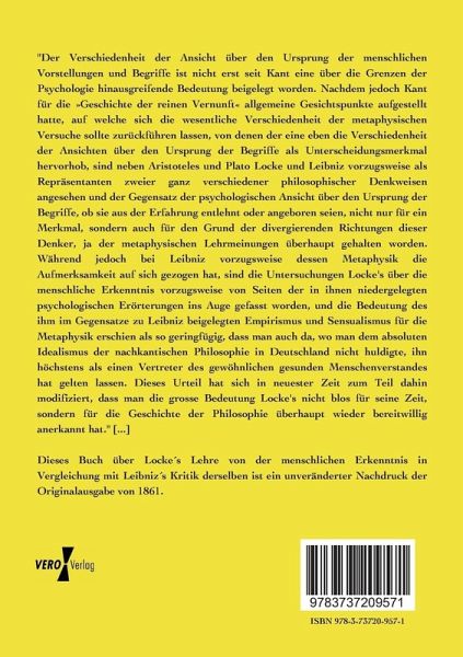 Dieses Buch über Locke s Lehre von der menschlichen Erkenntnis in Vergleichung mit Leibniz s Kritik derselben ist ein unveränderter Nachdruck der Originalausgabe von 1861.