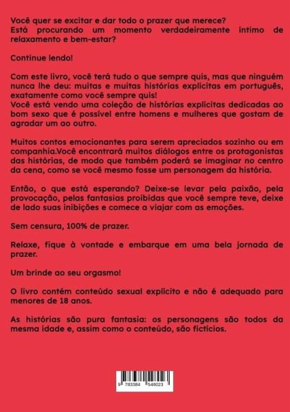 Você quer se excitar e dar todo o prazer que merece?Está procurando um momento verdadeiramente íntimo de relaxamento e bem-estar?Então continue lendo!Com este livro, você terá tudo o que sempre quis e que ninguém nunca lhe deu: muitas e muitas histórias explícitas em português, exatamente como você sempre quis!Você tem diante de si uma coleção de histórias explícitas dedicadas ao bom sexo que é possível entre homens e mulheres que gostam de agradar um ao outro. Muitos contos excitantes para experimentar sozinho ou acompanhado.Você encontrará muitos diálogos entre os protagonistas das histórias, de modo que também poderá se imaginar no centro da cena, como se você mesmo fosse um personagem da história.Então, o que está esperando? Deixe-se levar pela paixão, pela provocação, pelas fantasias proibidas que você sempre teve, deixe de lado suas inibições e comece a viajar com as emoções.Sem censura, 100% de prazer.Relaxe, fique à vontade e embarque em uma bela jornada de prazer.Um brinde ao seu orgasmo!