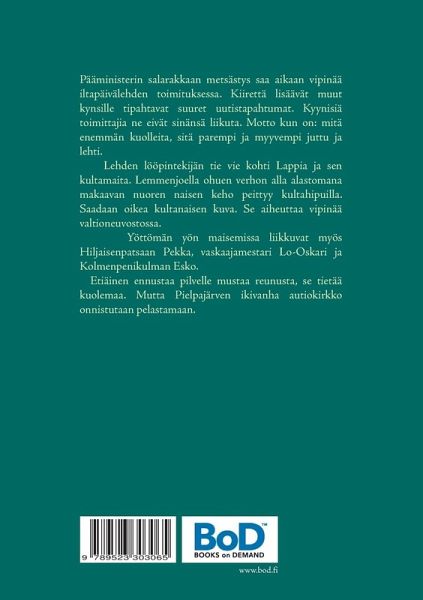 Pääministerin salarakkaan metsästys saa aikaan vipinää iltapäivälehden toimituksessa. Kiirettä lisäävät muut kynsille tipahtavat suuret uutistapahtumat. Kyynisiä toimittajia ne eivät sinänsä liikuta. Motto kun on: mitä enemmän kuolleita, sitä parempi ja myyvempi juttu ja lehti. Lehden lööpintekijän tie vie kohti Lappia ja sen kultamaita. Lemmenjoella ohuen verhon alla alastoman makaavan nuoren naisen keho peittyy kultahipuilla. Saadaan oikea kultanaisen kuva. Se aiheuttaa vipinää valtioneuvostossa. Yöttömän yön maisemissa liikkuvat myös vaskaajamestari Lo-Oskari, Kolmenpenikulman Esko ja Hiljaisenpatsaan Pekka. Etiäinen ennustaa pilvelle mustaa reunusta, se tietää kuolemaa. Mutta Pielpajärven ikivanha autiokirkko onnistutaan pelastamaan.