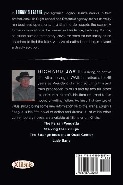 In Logan's League, protagonist Logan Drain's works in two professions. His flight school and detective agency are his carefully run business operations, until a murder upsets the scene. A further complication is the presence of his fiancée, the lovely Maxine, an airline pilot on temporary leave. He fears for her safety as he searches to find the killer. A maze of paths leads Logan toward a deadly solution.