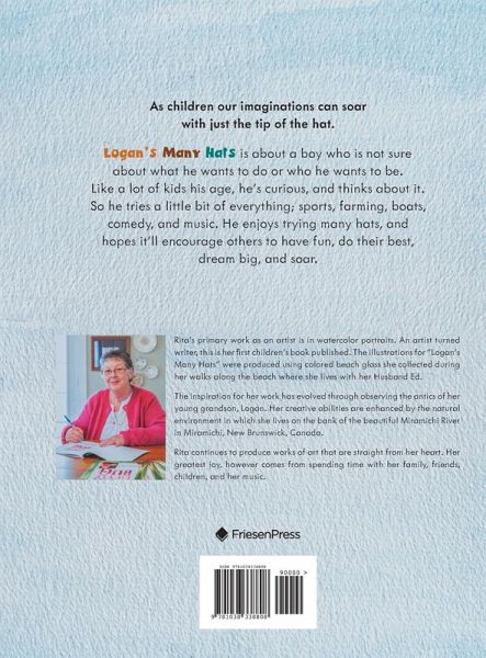 As children our imaginations can soar with just the tip of the hat. Logan's many hats is about a boy who is not sure about what he wants to do or who he wants to be. Like a lot of kids his age, he's curious, and thinks about it. So he tries a little bit of everything; sports, farming, boats, comedy, and music. He enjoys trying many hats, and hopes it'll encourage others to have fun, do their best, dream big, and soar.