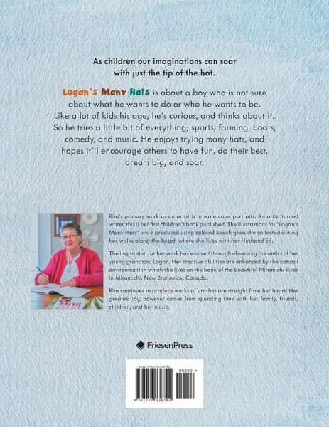 As children our imaginations can soar with just the tip of the hat. Logan's many hats is about a boy who is not sure about what he wants to do or who he wants to be. Like a lot of kids his age, he's curious, and thinks about it. So he tries a little bit of everything; sports, farming, boats, comedy, and music. He enjoys trying many hats, and hopes it'll encourage others to have fun, do their best, dream big, and soar.