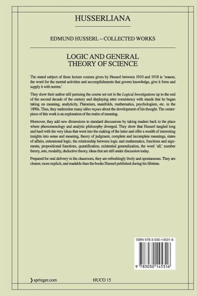 The stated subject of these lecture courses given by Husserlbetween 1910 and 1918is 'reason, the word for the mental activities and accomplishments that govern knowledge, give it form and supply it with norms.'