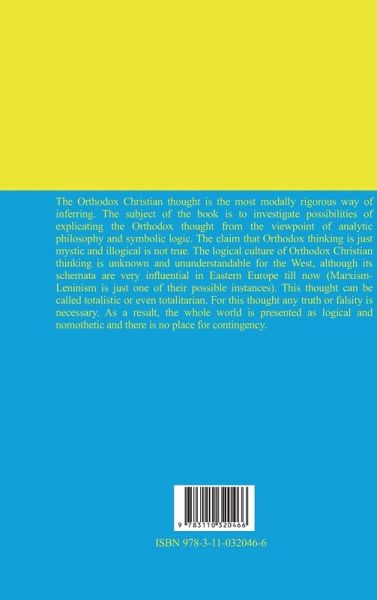 The Orthodox Christian thought is the most modally rigorous way of inferring. The subject of the book is to investigate possibilities of explicating the Orthodox thought from the viewpoint of analytic philosophy and symbolic logic. The claim that Orthodox thinking is just mystic and illogical is not true. The logical culture of Orthodox Christian thinking is unknown and ununderstandable for the West, although its schemata are very influential in Eastern Europe till now (Marxism-Leninism is just one of their possible instances). This thought can be called totalistic or even totalitarian. For this thought any truth or falsity is necessary. As a result, the whole world is presented as logical and nomothetic and there is no place for contingency.