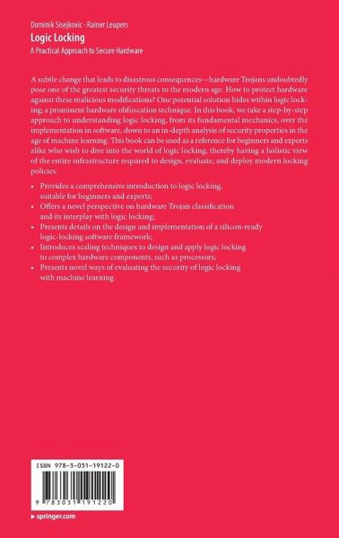 A subtle change that leads to disastrous consequences-hardware Trojans undoubtedly pose one of the greatest security threats to the modern age. How to protect hardware against these malicious modifications? One potential solution hides within logic locking; a prominent hardware obfuscation technique. In this book, we take a step-by-step approach to understanding logic locking, from its fundamental mechanics, over the implementation in software, down to an in-depth analysis of security properties in the age of machine learning. This book can be used as a reference for beginners and experts alike who wish to dive into the world of logic locking, thereby having a holistic view of the entire infrastructure required to design, evaluate, and deploy modern locking policies.