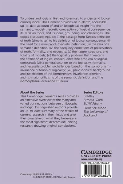 To understand logic is, first and foremost, to understand logical consequence. This Element provides an in-depth, accessible, up-to-date account of and philosophical insight into the semantic, model-theoretic conception of logical consequence, its Tarskian roots, and its ideas, grounding, and challenges.