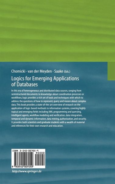 1 XML: Model, Schemas, Types, Logics, and Queries.- 1.1 Introduction.- 1.2 XML Fundamentals.- 1.3 XML Schema Notations.- 1.4 Programming and Querying XML.- 1.5 The Theory of Regular Tree Languages.- 1.6 XML Query Languages versus Automata and Logic.- 1.7 Conclusion.- References.- 2 Query Answering in Inconsistent Databases.- 2.1 Introduction.- 2.2 Consistent Query Answers.- 2.3 Query Transformation.- 2.4 SpecifYing Database Repairs.- 2.5 Computational Complexity.- 2.6 Aggregation Queries.- 2.7 Related Work.- 2.8 Conclusions and Future Work.- References.- 3 Declarative Update Policies for Nonmonotonic Knowledge Bases.- 3.1 Introduction.- 3.2 Preliminaries.- 3.3 Framework and Language.- 3.4 Properties.- 3.5 Implementation and Update Agents.- 3.6 Extensions.- 3.7 Related Work.- 3.8 Conclusion.- References.- 4 Intelligent Agents: Issues and Logics.- 4.1 Introduction.- 4.2 Issues.- 4.3 Epistemic and Doxastic Logic.- 4.4 Desires and Intentions.- 4.5 Cohen and Levesque's Logic of Intention.- 4.6 BDI Logic.- 4.7 KARO Logic.- 4.8 Logics for Multi-Agent Systems.- 4.9 Conclusion.- References and Further Readings.- 5 Logic Based Approaches to Workflow Modeling and Verification.- 5.1 Introduction.- 5.2 Preliminaries.- 5.3 Modeling Workflows with Temporal Logic.- 5.4 Modeling Workflows Using Event Algebra.- 5.5 Workflow Modeling Using Concurrent Transaction Logic.- 5.6 Other Uses of Logic in Workflow Modeling.- 5.7 Conclusion.- References.- 6 Logical Data Expiration.- 6.1 Introduction.- 6.2 Framework for Data Expiration.- 6.3 Administrative Approaches to Data Expiration.- 6.4 Query-Driven Approaches to Data Expiration.- 6.5 Potentially Infinite Histories.- 6.6 Related Work.- 6.7 Conclusion.- References.- 7 Description Logics for Modeling Dynamic Information.- 7.1 Introduction.- 7.2Conceptual Modeling of Dynamic Information.- 7.3 Description Logics.- 7.4 ERVT : A Formal Temporal Conceptual Model.- 7.5 An Object-Oriented Data Model for Evolving Schemas.- 7.6 Conclusion.- References.- 8 Logics for Authorizations and Security.- 8.1 Introduction.- 8.2 Preliminaries on Security Formalizations.- 8.3 Logic-Based Policy Specification Languages.- 8.4 Policy Evaluation and Verification.- 8.5 Other Applications of Logic to Security.- 8.6 Conclusion and Perspective.- References.- 9 Logical Languages for Data Mining.- 9.1 Introduction.- 9.2 The Search for Knowledge in Databases.- 9.3 Inductive Databases.- 9.4 Induction of Logic Programs.- 9.5 Multirelational Data Mining.- 9.6 A Vision of Convergence.- 9.7 Conclusion.- References.