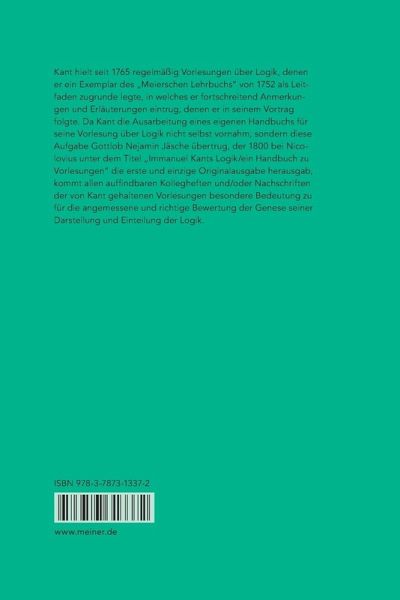 Kant hielt seit 1765 regelmäßig Vorlesungen über Logik, denen er ein Exemplar des ¿Meierschen Lehrbuchs¿ von 1752 als Leitfaden zugrunde legte, in welches er fortschreitend Anmerkungen und Erläuterungen eintrug, denen er in seinem Vortrag folgte. Da Kant die Ausarbeitung eines eigenen Handbuchs für seine Vorlesung über Logik nicht selbst vornahm, sondern diese Aufgabe Gottlob Nejamin Jäsche übertrug, der 1800 bei Nicolovius unter dem Titel ¿Immanuel Kants Logik/ein Handbuch zu Vorlesungen¿ die erste und einzige Originalausgabe herausgab, kommt allen auffindbaren Kollegheften und/oder Nachschriften der von Kant gehaltenen Vorlesungen besondere Bedeutung zu für die angemessene und richtige Bewertung der Genese seiner Darstellung und Einteilung der Logik.
