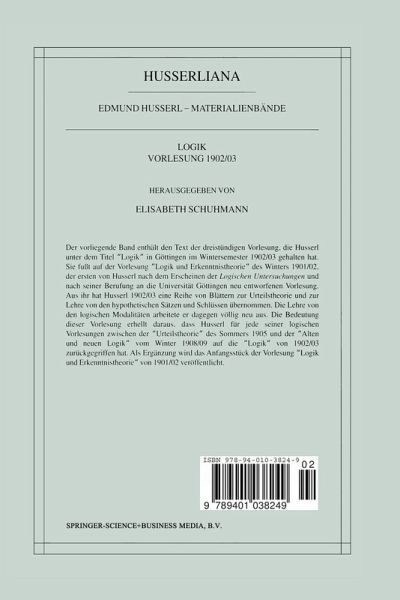 Der vorliegende Band enthält den Text der dreistündigen Vorlesung, die Husserl unter dem Titel `Logik' in Göttingen im Wintersemester 1902/03 gehalten hat. Sie fußt auf der Vorlesung `Logik und Erkenntnistheorie' des Winters 1901/02, der ersten von Husserl nach dem Erscheinen der Logischen Untersuchungen und nach seiner Berufung an die Universität Göttingen neu entworfenen Vorlesung. Aus ihr hat Husserl 1902/03 eine Reihe von Blättern zur Urteilstheorie und zur Lehre von den hypothetischen Sätzen und Schlüssen übernommen. Die Lehre von den logischen Modalitäten arbeitete er dagegen völlig neu aus. Die Bedeutung dieser Vorlesung erhellt daraus, dass Husserl für jede seiner logischen Vorlesungen zwischen der `Urteilstheorie' des Sommers 1905 und der `Alten und neuen Logik' vom Winter 1908/09 auf die `Logik' von 1902/03 zurückgegriffen hat. Als Ergänzung wird das Anfangsstück der Vorlesung `Logik und Erkenntnistheorie' von 1901/02 veröffentlicht.