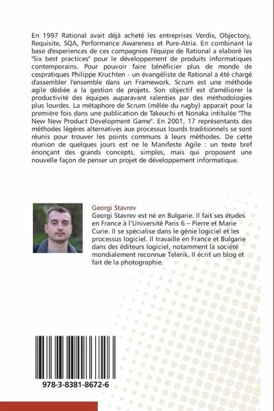 En 1997 Rational avait déjà acheté les entreprises Verdix, Objectory, Requisite, SQA, Performance Awareness et Pure-Atria. En combinant la base d'experiences de ces compagnies l'équipe de Rational a elaboré les "Six best practices" pour le développement de produits informatiques contemporains. Pour pouvoir faire bénéficier plus de monde de cespratiques Philippe Kruchten - un évangéliste de Rational a été chargé d'assembler l'ensemble dans un Framework. Scrum est une méthode agile dédiée a la gestion de projets. Son objectif est d'améliorer la productivité des équipes auparavant ralenties par des méthodologies plus lourdes. La métaphore de Scrum (mêlée du rugby) apparait pour la première fois dans une publication de Takeuchi et Nonaka intitulée "The New New Product Development Game". En 2001, 17 représentants des méthodes légères alternatives aux processus lourds traditionnels se sont réunis pour trouver les points communs à leurs méthodes. De cette réunion de quelques jours est ne le Manifeste Agile : un texte bref énonçant des grands concepts, simples, mais qui proposent une nouvelle façon de penser un projet de développement informatique.