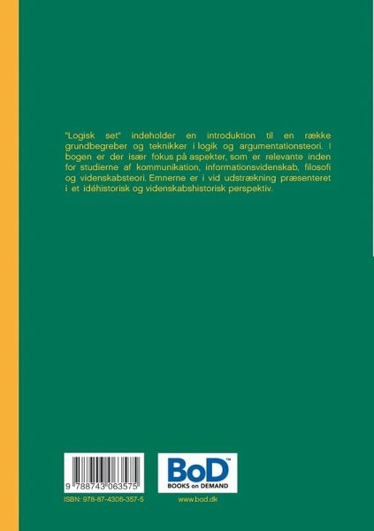 "Logisk set" indeholder en introduktion til en række grundbegreber og teknikker i logik og argumentationsteori. I bogen er der især fokuspåaspekter, som er relevante inden forstudierne af kommunikation, informationsvidenskab, filosofi og videnskabsteori. Emnerne er i vid udstrækning præsenteret ietidéhistorisk og videnskabshistorisk perspektiv.