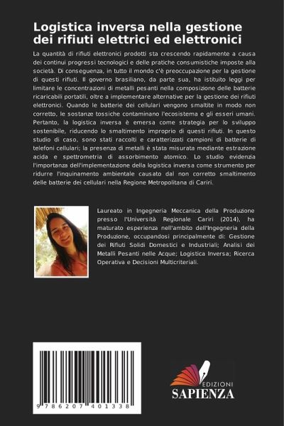 La quantità di rifiuti elettronici prodotti sta crescendo rapidamente a causa dei continui progressi tecnologici e delle pratiche consumistiche imposte alla società. Di conseguenza, in tutto il mondo c'è preoccupazione per la gestione di questi rifiuti. Il governo brasiliano, da parte sua, ha istituito leggi per limitare le concentrazioni di metalli pesanti nella composizione delle batterie ricaricabili portatili, oltre a implementare alternative per la gestione dei rifiuti elettronici. Quando le batterie dei cellulari vengono smaltite in modo non corretto, le sostanze tossiche contaminano l'ecosistema e gli esseri umani. Pertanto, la logistica inversa è emersa come strategia per lo sviluppo sostenibile, riducendo lo smaltimento improprio di questi rifiuti. In questo studio di caso, sono stati raccolti e caratterizzati campioni di batterie di telefoni cellulari; la presenza di metalli è stata misurata mediante estrazione acida e spettrometria di assorbimento atomico. Lo studio evidenzia l'importanza dell'implementazione della logistica inversa come strumento per ridurre l'inquinamento ambientale causato dal non corretto smaltimento delle batterie dei cellulari nella Regione Metropolitana di Cariri.