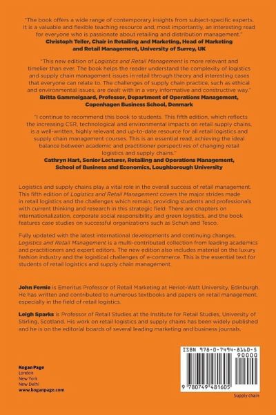 John Fernie is Emeritus Professor of Retail Marketing at Heriot-Watt University, Edinburgh. He has written and contributed to numerous textbooks and papers on retail management, especially in the field of retail logistics. Leigh Sparks is Professor of Retail Studies at the Institute for Retail Studies, University of Stirling, Scotland. He is on the editorial boards of several leading marketing and business journals.