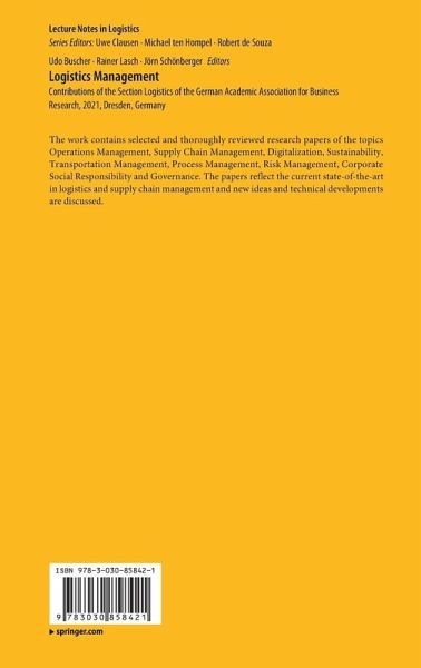 The work contains selected and thoroughly reviewed research papers of the topics Operations Management, Supply Chain Management, Digitalization, Sustainability, Transportation Management, Process Management, Risk Management, Corporate Social Responsibility and Governance. The papers reflect the current state-of-the-art in logistics and supply chain management and new ideas and technical developments are discussed.