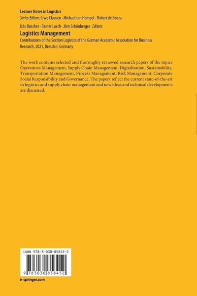 The work contains selected and thoroughly reviewed research papers of the topics Operations Management, Supply Chain Management, Digitalization, Sustainability, Transportation Management, Process Management, Risk Management, Corporate Social Responsibility and Governance. The papers reflect the current state-of-the-art in logistics and supply chain management and new ideas and technical developments are discussed.