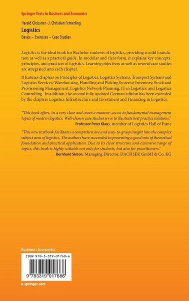"This new textbook facilitates a comprehensive and easy-to-grasp insight into the complex subject area of logistics. The authors have succeeded in presenting a good mix of theoretical foundation and practical application. Due to its clear structure and extensive range of topics, this book is highly suitable not only for students, but also for practitioners."