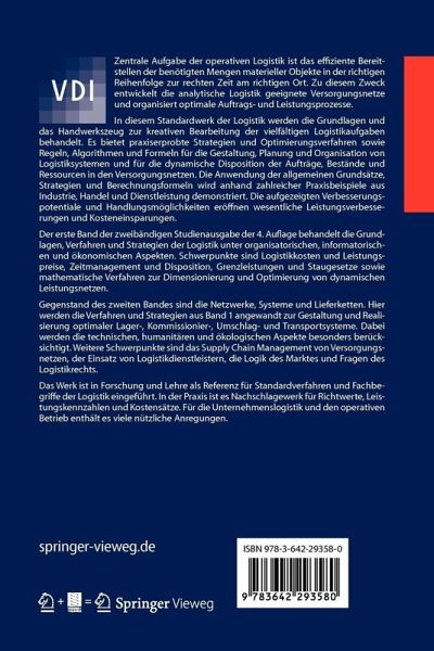 Der erste Band der zweibändigen Studienausgabe der 4. Auflage behandelt die Grundlagen, Verfahren und Strategien der Logistik unter organisatorischen, informatorischen und ökonomischen Aspekten. Schwerpunkte sind Logistikkosten und Leistungspreise, Zeitmanagement und Disposition, Grenzleistungen und Staugesetze sowie mathematische Verfahren zur Dimensionierung und Optimierung von dynamischen Leistungsnetzen.