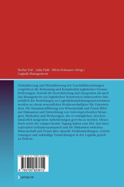 Globalisierung und Virtualisierung der Geschäftsbeziehungen vergrößern die Bedeutung und Komplexität logistischer Herausforderungen. Sowohl die Koordinierung und Integration als auch das Management von logistischen Netzwerken insbesondere hinsichtlich der Beziehungen zu Logistikdienstleistungsunternehmen wird zu einem wesentlichen Wettbewerbsfaktor für Unternehmen. Die Zusammenführung von Wissenschaft und Praxis führt zur Diskussion und Entwicklung von vielversprechenden Strategien, Methoden und Werkzeugen, die es ermöglichen, den kontinuierlich steigenden Anforderungen gerecht zu werden. Dieses Buch wie die entsprechende Tagung haben zum Ziel, den internationalen Gedankenaustausch und die Diskussion zwischen Wissenschaft und Praxis über aktuelle Problemstellungen, erzielten Lösungen und zukünftigen Entwicklungen in der Logistik gezielt zu fördern.