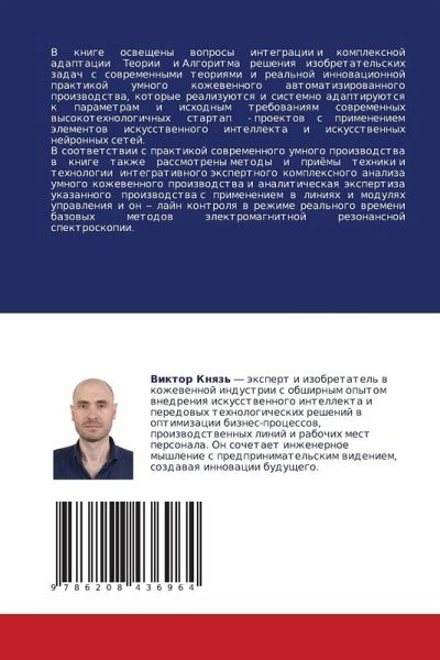 V knige oswescheny woprosy integracii i komplexnoj adaptacii Teorii i Algoritma resheniq izobretatel'skih zadach s sowremennymi teoriqmi i real'noj innowacionnoj praktikoj umnogo kozhewennogo awtomatizirowannogo proizwodstwa, kotorye realizuütsq i sistemno adaptiruütsq k parametram i ishodnym trebowaniqm sowremennyh wysokotehnologichnyh startap - proektow s primeneniem älementow iskusstwennogo intellekta i iskusstwennyh nejronnyh setej.V sootwetstwii s praktikoj sowremennogo umnogo proizwodstwa w knige takzhe rassmotreny metody i priömy tehniki i tehnologii integratiwnogo äxpertnogo komplexnogo analiza umnogo kozhewennogo proizwodstwa i analiticheskaq äxpertiza ukazannogo proizwodstwa s primeneniem w liniqh i modulqh uprawleniq i on - lajn kontrolq w rezhime real'nogo wremeni bazowyh metodow älektromagnitnoj rezonansnoj spektroskopii.