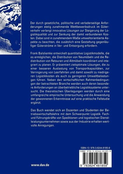 Frank Balsliemke entwickelt quantitative Logistikmodelle, die es ermöglichen, die Distribution von Neumöbeln und die Redistribution von Retouren und Altmöbeln koordiniert und integriert zu planen. Er präsentiert zieloptimale Lösungen, die zu einer besseren Auslastung von Transportkapazitäten, zur Verringerung von Leerfahrten und damit sowohl zu niedrigeren Logistikkosten als auch zu geringeren Umweltbelastungen führen. Neben den wirtschaftlichen Rahmenbedingungen der betrachteten Branche werden auch deren besondere Anforderungen an überbetriebliche Logistiksysteme untersucht. Die theoretischen Überlegungen werden durch eine umfangreiche empirische Untersuchung und die Anwendung der gewonnenen Erkenntnisse auf eine praktische Fallstudie ergänzt.