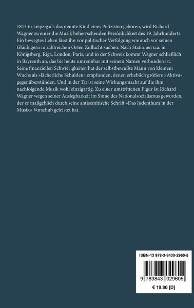1813 in Leipzig als das neunte Kind eines Polizisten geboren, wird Richard Wagner zu einer die Musik beherrschenden Persönlichkeit des 19. Jahrhunderts. Ein bewegtes Leben lässt ihn vor politischer Verfolgung wie auch vor seinen Gläubigern in zahlreichen Orten Zuflucht suchen. Nach Stationen u.a. in Königsberg, Riga, London, Paris, und in der Schweiz kommt Wagner schließlich in Bayreuth an, das bis heute untrennbar mit seinem Namen verbunden ist. Seine finanziellen Schwierigkeiten hat der selbstbewußte Mann von kleinem Wuchs als "lächerliche Schulden" empfunden, denen erheblich größere "Aktiva" gegenüberstünden. Und in der Tat ist seine Wirkungsmacht auf die ihm nachfolgende Musik wohl einzigartig.