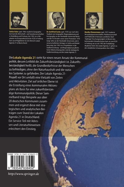 I: Konzepte und Analysen.- Was ist eine Lokale Agenda 21?.- Kommunales Mosaik - Entwicklungstrends der Lokalen Agenda 21 in Deutschland.- Die Zukunft der Stadt zwischen globaler Herausforderung und lokaler Gestaltungsmöglichkeit.- Umweltplanerische Anforderungen an die Lokale Agenda 21 - Strategien auf Bundesebene für eine nachhaltige Kommunalentwicklung.- Ganzheitliche Stadtentwicklung als integrative Stadtentwicklungsplanung.- Zur Umsetzung der Agenda 21 in den Staaten und Kommunen.- Deutsche Städte auf dem Weg zur Lokalen Agenda 21.- Deutsche Kommunen im internationalen Vergleich.- II: Kommunale Beispiele.- Berlin-Köpenick: Kirchgemeinden, Bezirksamt und Öffentlichkeit - "drei Säulen" für eine Lokale Agenda 21.- Berlin-Köpenick: Sechs Thesen für den Agenda-Prozeß - Erfahrungen aus der Arbeit Berlin-Köpenick.- Berlin-Lichtenberg: Indikatoren für eine zukunftsfähige Stadtentwicklung.- Lokale Agenda 21 - Düsseldorf ist auf dem Weg.- Lokale Agenda in Freiburg im Breisgau.- Stadt Germering: Im kommunalen Verbund zur Lokalen Agenda 21.- Der Hagener Agenda-Prozeß.- Qualitätsziele für eine nachhaltige Stadtentwicklung in Halle (Saale).- Kommunale Agenda 21 in Hamburg: Von der Mitarbeiterinnenbeteiligung zum Projekt.- Hannover: Wir brauchen ein Klima, das Mut macht für gesellschaftliche Veränderungen.- Nachhaltiges Heidelberg: Vom Klimaschutzmanagement zum umfassenden Agendaprozeß.- Der "Karlsruher Weg" - Von der sektoralen Betrachtung zur Agenda 21 Karlsruhe.- Umweltqualitätsziele und -standards als Grundlage und Weg zu einer Leipziger Agenda 21.- Einblick in die Vorbereitungen des Lokale Agenda 21-Prozesses in Leverkusen.- Auf dem Weg zur Lokalen Agenda 21 in Lübeck.- München: Klimaschutz in der Wohnungssanierung als lokalesAgenda-Projekt.- Auf dem Weg zu einem zukunftsfähigen München.- Mehr tun für Nürnbergs Zukunft: Die Lokale Agenda 21 in Nürnberg..- Internationalismusarbeit und lokale Friedenspolitik als Wurzel der Agenda 21 in Osnabrück.- Unterhaching: Die Bürgerschaft als Träger der Lokalen Agenda 21.- Bonn bekennt sich zur lokalen Agenda 21.- III: Die Akteure.- Umsetzung der kommunalen Agenda 21 in den Gemeinden aus der Sicht des Bayerischen Gemeindetags.- Bundesländer steigen ein.- Menschen vor Ort gestalten die Welt - Der lokale Agenda-Prozeß in Nordrhein-Westfalen.- Nichtregierungsorganisationen in Lokale Agenda 21-Prozessen.- Der subjektive Faktor in der Stadtplanung - Drei Anmerkungen zur Rolle von Planerinnen und Planern in Agenda 21-Prozessen.- Putting Gender on the Agenda.- Die Partizipation von Kindern und Jugendlichen am Prozeß der zukunftsfähigen Entwicklung.- Umweltkommunikation und Lokale Agenda 21: Wie sich Lokale Agenda 21-Initiativen organisieren.- IV: Service.- Dokumente.- Agenda 21, Kapitel 28: Initiativen der Kommunen zur Unterstützung der Agenda 21 (Juni 1992).- Charta der Europäischen Städte und Gemeinden auf dem Weg zur Zukunftsbeständigkeit (Charta von Aalborg) (Mai 1994).- Der Lissabonner Aktionsplan: Von der Charta zum Handeln (Oktober 1996).- Die Bremer Erklärung: Wirtschaft und Kommune - Neue Partnerschaften für das 21. Jahrhundert (März 1997).- Lübecker Beschluß: 46. Umweltministerkonferenz vom 12./13. Juni 1996.- Musterantrag für Gemeinden.- Adressen, Institutionen.- Literatur.