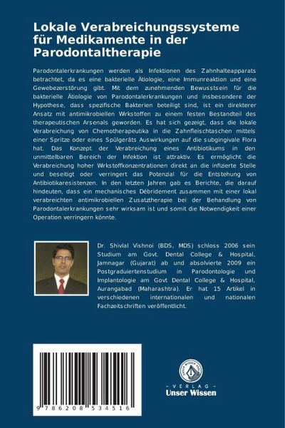 Parodontalerkrankungen werden als Infektionen des Zahnhalteapparats betrachtet, da es eine bakterielle Ätiologie, eine Immunreaktion und eine Gewebezerstörung gibt. Mit dem zunehmenden Bewusstsein für die bakterielle Ätiologie von Parodontalerkrankungen und insbesondere der Hypothese, dass spezifische Bakterien beteiligt sind, ist ein direkterer Ansatz mit antimikrobiellen Wirkstoffen zu einem festen Bestandteil des therapeutischen Arsenals geworden. Es hat sich gezeigt, dass die lokale Verabreichung von Chemotherapeutika in die Zahnfleischtaschen mittels einer Spritze oder eines Spülgeräts Auswirkungen auf die subgingivale Flora hat. Das Konzept der Verabreichung eines Antibiotikums in den unmittelbaren Bereich der Infektion ist attraktiv. Es ermöglicht die Verabreichung hoher Wirkstoffkonzentrationen direkt an die infizierte Stelle und beseitigt oder verringert das Potenzial für die Entstehung von Antibiotikaresistenzen. In den letzten Jahren gab es Berichte, die darauf hindeuten, dass ein mechanisches Débridement zusammen mit einer lokal verabreichten antimikrobiellen Zusatztherapie bei der Behandlung von Parodontalerkrankungen sehr wirksam ist und somit die Notwendigkeit einer Operation verringern könnte.