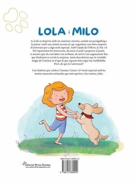 La Lola es desperta amb un somriure enorme, sentint un pessigolleig a la panxa i amb una missió secreta al cap: organitzar una festa sorpresa d'aniversari per a algú molt especial. Amb l'ajuda de l'Oliver, la Nia i el Pol reparteixen les invitacions, decoren el jardí i preparen el pastís. A mesura que els convidats van arribant, els nervis van augmentant fins que, finalment, es revela la sorpresa. Junts descobriran que la veritable màgia de l'amistat és el que fa que aquesta festa sigui tan inoblidable. Però, de qui és l'aniversari? Lola i Milo és una història commovedora i divertida que celebra l'amistat, l'amor i el vincle especial amb les nostres mascotes estimades, que tant aporten a les nostres vides. Aquest conte és ideal per llegir en qualsevol moment del dia i per a qualsevol ocasió! Aquesta història és una excel·lent manera de fomentar la intel·ligència emocional i les habilitats socials en els nens, a més d'inspirar l'amor i la cura cap als animals i el seu benestar. No et perdis aquesta oportunitat d'embarcar-te en una aventura plena d'aprenentatge i diversió!