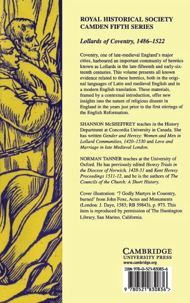Coventry, one of late medieval England's major cities, harbored an important community of heretics, known as Lollards, in the late fifteenth and early sixteenth centuries. This volume presents all the known records concerning these heretics, in the original languages of Latin and medieval English as well as in a modern English translation. The documents offer new insights into the nature of religious dissent in England prior to the first stirrings of the English Reformation.