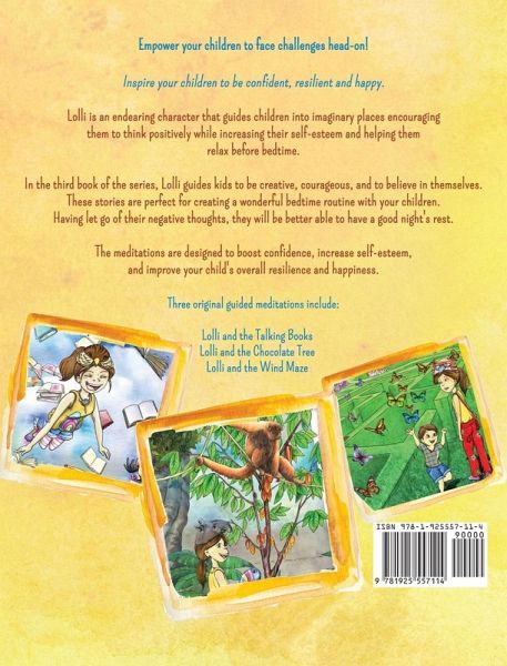 Empower your children to face challenges head-on! Inspire your kids to be confident, resilient and happy. Lolli is an endearing character that guides children into imaginary places encouraging them to think positively while increasing their self-esteem and helping them relax before bedtime. In the third book of the series, Lolli guides kids to be creative, courageous, and to believe in themselves. These stories are perfect for creating a wonderful bedtime routine with your children. Having let go of their negative thoughts, they will be better able to have a good night's rest. The meditations are designed to boost confidence, increase self-esteem, and improve your child's overall resilience and happiness. Three original guided meditations include: Lolli and the Talking Books Lolli and the Chocolate Tree Lolli and the Wind Maze GET YOUR COPY NOW! Also available in audio book and e-book editions.