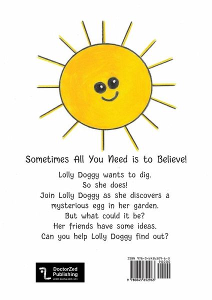 Sometimes All You Need is to Believe! Lolly Doggy wants to dig. So she does! Join Lolly Doggy as she discovers a mysterious egg in her garden. But what could it be? Her friends have some ideas. Can you help Lolly Doggy find out?