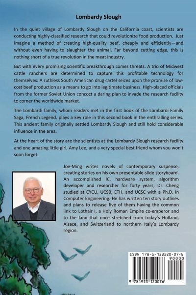 In the quiet village of Lombardy Slough on the Northern California coast, scientists are conducting highly-classified research that could revolutionize food production. Just imagine a method of creating high-quality beef, cheaply and efficiently-and without even having to slaughter the animal. Far beyond cutting edge, this is nothing short of a true revolution in the meat industry. But with every promising scientific breakthrough comes threats. A trio of Midwest cattle ranchers is determined to capture this profitable technology for themselves. A ruthless South American drug cartel seizes upon the promise of low-cost beef production as a means to go into legitimate business. High-placed officials from the former Soviet Union concoct a daring plan to invade the research facility to corner the worldwide market. The elite former Soviet commando unit Russian Pride makes daring trial landings on the beach at Ventura, California, and the UC Santa Barbara campus. Their ultimate plan is to invade Lombardy Slough in November during an unusually high tide known as the King Tide. The Lombardi family, whom readers met in the first book of the Lombardi Family Saga, French Legend, plays a key role in this second book in the enthralling series. This ancient family originally settled Lombardy Slough and still hold considerable influence in the area. At the heart of the story are the scientists at the Lombardy Slough research facility and one amazing little girl, Amy Lee, and a very special best friend whom you won't soon forget.