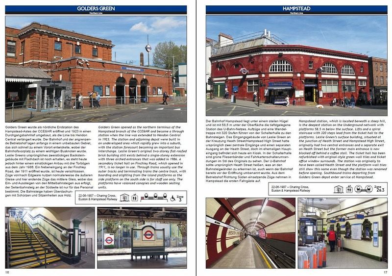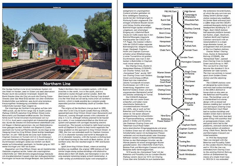 Dies ist der dritte Band unserer Trilogie, in der wir die abwechslungsreichen Stile der Bahnhöfe der weltberühmten Londoner U-Bahn präsentieren. Im diesem Band werden alle Bahnhöfe der übrigen "Tube"-Linien vorgestellt, d.h. jener Linien, die durch die Innenstadt in tiefliegenden Röhren verlaufen: die Northern, Piccadilly und Victoria Line. Auf der Fahrt entlang jeder Linie werden alle Stationen in Farbe präsentiert, von den fahrgaststarken zentralen Umsteigebahnhöfen im Zentrum von London bis zu den ruhigen Vorortbahnhöfen, mit kurzen Texten über die Geschichte und die Gestaltung jeder Station. Am Ende findet der Leser detaillierte Karten, die diese Linien im Kontext des gesamten Bahnnetzes im Großraum London zeigen. Die übrigen "Tube"-Linien werden in einem dritten Band behandelt. // This is the third volume of our trilogy exploring the many fascinating styles of station to be found on the world-famous London Underground network. It covers all the stations of three 'tube' lines - the Northern, Piccadilly and Victoria Lines. The book takes you on a ride along each line, illustrating all stations in full colour, from busy central London interchanges to quiet suburban stations, with short captions about each station's history and design. At the end of the book, the reader will find detailed maps showing these lines in the context of the Greater London rail network. A third volume will cover the stations of the remaining 'tube' lines.