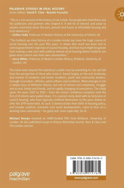 This book looks beyond the Aylesbury's public face by examining its rise and fall from the perspective of those who knew it, based largely on the oral testimony and memoir of residents and former residents, youth and community workers, borough Councillors, officials, police officers and architects. What emerges is not a simple story of definitive failures, but one of texture and complexity, struggle and accord, family and friends, and of rapidly changing circumstances. The study spans the years 1967 to 2010 - from the estate's ambitious inception until the first of its blocks were pulled down. It is a period rarely dealt with by historians of council housing, who have typically confined themselves to the years before or after the 1979 watershed. As such, it demonstrates how shifts in housing policy, and broader political, economic and social developments, came to bear on a working-class community - for good and, more especially, for ill.
