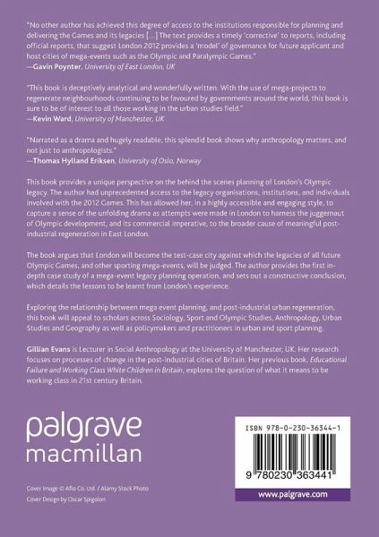 This book provides a unique perspective on the behind the scenes planning of London's Olympic legacy. The author had unprecedented access to the legacy organisations, institutions, and individuals involved with the 2012 Games. This has allowed her, in a highly accessible and engaging style, to capture a sense of the unfolding drama as attempts were made in London to harness the juggernaut of Olympic development, and its commercial imperative, to the broader cause of meaningful post-industrial regeneration in East London.