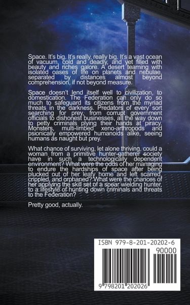 Lisa's a few inches shy of seven feet tall, even when she wears flat heels. She's got the physique of a fetishistic muscle goddess, impressive in every sense of the word. Her eyes glow when she's staring down her enemies, and her right arm is a prosthetic multi-tool. She's got the firepower of a capital ship on her sturdy little vessel, her armor has seen veterans and laborers through the worst of conditions for over a century, and both the ship and the armor were a gift from her foster father after he'd finished teaching her everything he knew about being better at violence than whoever she'd be hunting down. Even her surname, chosen according to the traditions of her culture, was tailor made for her choice of career. Huntress. Lisa's also chronically depressed, desperately lonely, and filled with self-loathing so powerful it's practically a split personality dedicated to making her miserable. She lives in her ship like a recluse, she's terrified of large crowds, and she's convinced she's a big ugly monster, only good for hunting down other monsters. Her prosthetic limb is a reminder of everything she's lost, her home planet has no place for her, and her love life fits in the drawer next to her bed. But just because that's what she is, doesn't mean that's what she always has to be. Maybe, just maybe, she can learn to be more than what she is. Maybe she can learn to derive self-esteem from her career. Maybe she can learn to see herself through the eyes of an unexpected assortment of bashful suitors of varying genders and backgrounds. And if nothing else, there's always a few pirates out wanting to hurt others… And just like her Daddy, Lisa loves hurting the people who hurt other people.