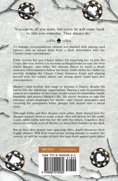 "You can lie all you want, but every lie will come back to bite you someday. They always do." ¿¿To manage overpopulation, citizens are marked with playing card tattoos-and an annual draw from a deck determines who the Chaser Corps exterminates. Eddie resents her pro-Chaser father for expecting her to join the Corps. Her true desire is to become an illegal healer to save her best friend Margot, who hides her chronic illness to avoid a death sentence. Determined to follow her heart, Eddie defies her father by secretly dodging the Chaser Corps Entrance Exam and aligning herself with the rebels, where one wrong move could have dire consequences. Margot's twin brother Ren longs to become a Chaser, despite his hatred for the inhumane organization. Playing a role in population control as a member of the Corps would secure his immediate family Immunity and protect Margot's life. His secret decision to take the entrance exam challenges his family's anti-Chaser principles, and receiving his acceptance letter plunges him deeper into a moral crisis. Although Eddie and Ren despise each other, their shared love for Margot compels them to strike a deal-Ren will devote his life to the Corps, while Eddie will risk her life with the rebels. Together, they weave an intricate web of falsities to keep their families in the dark. But as they dive deeper into opposing sides, doubt threatens their fragile alliance. Will their bond prove strong enough to shatter the system, or will the weight of their lies turn them against each other? With beautiful prose and witty characters, debut author Julia Rosemary Turk delivers an epic tale of sacrifice, betrayal, and the pursuit of truth in a society built on deception.