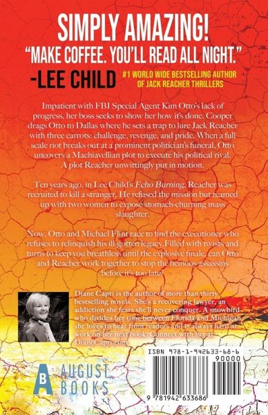 USA Today Bestselling series! The next gripping Hunt for Jack Reacher Thriller from Diane Capri! "Make some coffee. You'll read all night." Lee Child Impatient with FBI Special Agent Kim Otto's lack of progress, her boss seeks to show her how it's done. Cooper drags Otto to Dallas where he sets a trap to lure Jack Reacher with three carrots: challenge, revenge, and pride. When a full scale riot breaks out at the prominent politician's funeral, Otto uncovers a Machiavellian plot to execute his political rival. A plot Reacher unwittingly put in motion. Ten years ago, in Lee Child's Echo Burning, Reacher was recruited to kill a stranger. He refused the mission but teamed up with two women to expose stomach-churning mass slaughter. Now, Otto and Michael Flint race to find the executioner who refuses to relinquish his ill-gotten legacy. Filled with twists and turns to keep you breathless until the explosive finale, can Otto and Reacher work together to stop the heinous assassins before it's too late? Lee Child Gives Diane Capri Two Thumbs Up! "Full of thrills and tension, but smart and human, too. Kim Otto is a great, great character - I love her." -Lee Child, #1 World Wide Bestselling Author of Jack Reacher Thrillers including The Killing Floor, Echo Burning, and No Plan B. The Hunt for Jack Reacher series enthralls fans of John Grisham, Lee Child, David Baldacci, Michael Connelly, Karin Slaughter, Lisa Gardner, John Sandford, and more: "Diane writes like the maestro of the jigsaw puzzle. Sit back in your favorite easy chair, pour a glass of crisp white wine, and enter her devilishly clever world." -David Hagberg, New York Times Bestselling Author of Kirk McGarvey Thrillers "Expertise shines on every page." -Margaret Maron, Edgar, Anthony, Agatha and Macavity Award Winning MWA Past President and MWA Grand Master Readers Love the Hunt for Jack Reacher Series and Diane Capri: "All Child fans should give it a try!" Award winning New York Times and USA Today Bestselling Author DIANE CAPRI Does It Again in another Blockbuster Hunt for Jack Reacher Series Novel