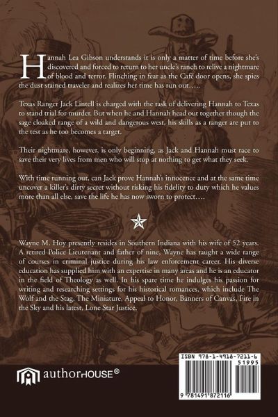 Hannah Lea Gibson understands it is only a matter of time before she's discovered and forced to return to her uncle's ranch to relive a nightmare of blood and terror. Flinching in fear as the Café door opens, she spies the dust stained traveler and realizes her time has run out..... Texas Ranger Jack Lintell is charged with the task of delivering Hannah to Texas to stand trial for murder. But when he and Hannah head out together though the sage cloaked range of a wild and dangerous west, his skills as a ranger are put to the test as he too becomes a target. Their nightmare, however, is only beginning, as Jack and Hannah must race to save their very lives from men who will stop at nothing to get what they seek. With time running out, can Jack prove Hannah's innocence and at the same time uncover a killer's dirty secret without risking his fidelity to duty which he values more than all else, save the life he has now sworn to protect....