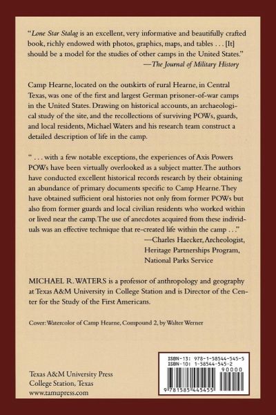 MICHAEL. WATERS is the principal author of this work and served as the head of the research team. He is a professor of anthropology and geography at Texas A&M University and is Associate Director of the Center for the Study of the First Americans What Readers Are Saying: "It is well written, engaging, and original . . . will fill an important gap in our knowledge of World War Two on the homefront . . . Waters' book is the only book to examine the history of a single camp, and that in Texas, complete with interviews with former prisoners, guards, and local townspeople. Even more important, Waters' book is also an archaeological examination of the campsite, based on the detailed labor of dozens of young archaeological students over a period of some four years. Waters details their findings, to reveal the daily experiences of the more than 4,000 German soldiers who spent the war year in Texas. Prof. Waters and his team have unearthed a treasure trove of information which will be of interest to historians, archaeologists, history buffs, and specialists of Texas history, alike."--Arnold Krammer, author, Nazi Prisoners of War in America and Hitler's Last Soldier in America. "It is well written, engaging, and original . . . will fill an important gap in our knowledge of World War Two on the homefront . . . Waters' book is the only book to examine the history of a single camp, and that in Texas, complete with interviews with former prisoners, guards, and local townspeople. Even more important, Waters' book is also an archaeological examination of the campsite, based on the detailed labor of dozens of young archaeological students over a period of some four years. Waters details their findings, to reveal the daily experiences of the more than 4,000 German soldiers who spent the war year in Texas. Prof. Waters and his team have unearthed a treasure trove of information which will be of interest to historians, archaeologists, history buffs, and specialists of Texas history, alike." --Arnold Krammer, author, Nazi Prisoners of War in America and Hitler