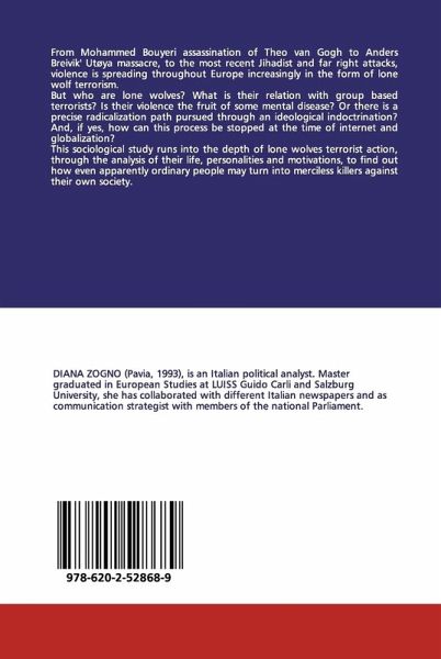 From Mohammed Bouyeri assassination of Theo van Gogh to Anders Breivik' Utøya massacre, to the most recent Jihadist and far right attacks, violence is spreading throughout Europe increasingly in the form of lone wolf terrorism. But who are lone wolves? What is their relation with group based terrorists? Is their violence the fruit of some mental disease? Or there is a precise radicalization path pursued through an ideological indoctrination? And, if yes, how can this process be stopped at the time of internet and globalization? This sociological study runs into the depth of lone wolves terrorist action, through the analysis of their life, personalities and motivations, to find out how even apparently ordinary people may turn into merciless killers against their own society.