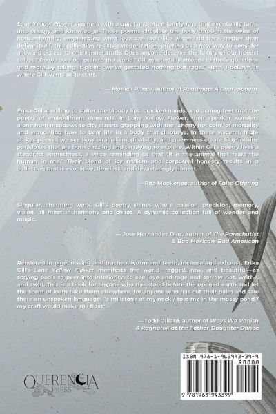 Lone Yellow Flower simmers with a quiet and often lonely fury that eventually turns into energy and knowledge. These poems circulate the body through the veins of nonconformity, emphasizing what love can look like when laid bare. Rather than define itself, this collection resists categorization, offering us a new way to consider allowing access to one's inner truth. Does anyone deserve the luxury of our honest selves? Do we owe our pain to the world? Gill masterfully attends to these questions and more by telling it plain: "we've gestated nothing but rage." Here, I believe, is where Gill wants us to start.-Monica Prince, author of Roadmap: A ChoreopoemRendered in pigeon wing and trachea, worm and teeth, incense and exhaust, Erika Gill's Lone Yellow Flower manifests the world-ragged, raw, and beautiful-as scrying pools to peer into interiority, to see love and rage and sorrow riot, writhe, and swirl. This is a book for anyone who has stood before the opened earth and let the scent of loam take them elsewhere, for anyone who has cut their palm and saw there an unspoken language. "a millstone at my neck / toss me in the mossy pond / my craft would make me float"-Todd Dillard, author of Ways We Vanish and Ragnarök at the Father-Daughter Dance
