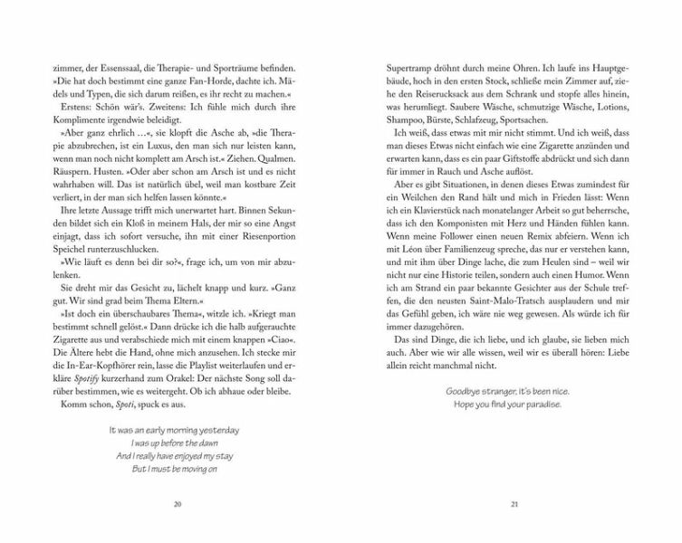 Dann trifft sie Emilian, genannt Milly. Für sein letztes Schuljahr zieht er als Gastschüler in Claras Elternhaus an der rauen französischen Küste ein. Zwischen den beiden wächst eine Liebesbeziehung, so stürmisch und besonders wie der saphirblaue Ozean.Auch wenn sie so unterschiedlich sind wie Feuer und Wasser, verbindet beide eine Gemeinsamkeit: die schwierige Beziehung zu den Eltern. Doch während Milly es schafft, sich davon zu lösen und seinen eigenen Weg zu gehen, hat Clara zu kämpfen und rutscht immer wieder in emotionale Krisen.Je mehr Milly seine brennende Lebensfreude in Claras kühle und dunkle Welt mit den ungeahnten Tiefen bringt, umso mehr möchte sie heilen und glücklich sein. Doch während ihre Gefühle füreinander wachsen, holen Claras innere Dämonen sie ein - und Milly steht vor einer Entscheidung, die alles verändern könnte.