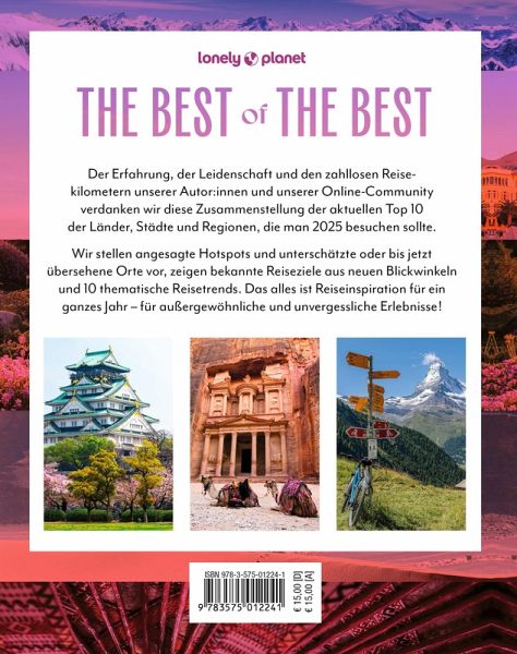 „Discover the greatest places to experience right now in our epic annual bestselling guide that ranks the world's hottest countries, regions, and cities. Featuring our traditional top 10 lists plus NEW top 10 categories, amazing photography and insider tips, you'll find mountains of