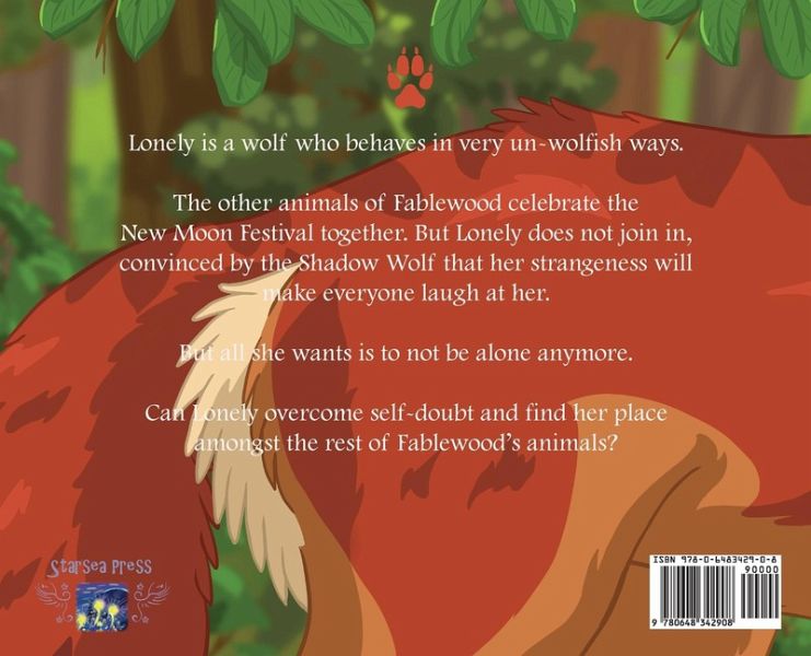 Lonely the wolf behaves in very un-wolfish ways. The other animals of Fablewood celebrate festivals together. But Lonely does not join in, convinced by the Shadow Wolf her strangeness will make them laugh at her. But all she wants is to not be alone anymore. Can Lonely overcome self-doubt and find her place with the rest of Fablewood's animals?